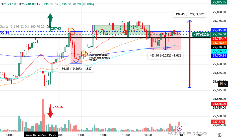 As per our predefined technical setup, the early part of the session remained range-bound. This offered a short-selling opportunity near the resistance zone of 25,743. The resistance proved to be extremely strong, and within the first 20 minutes, the price corrected sharply by nearly 91 points. Traders who relied on price action combined with trend and moving average indicators could efficiently capture this move and book profits.