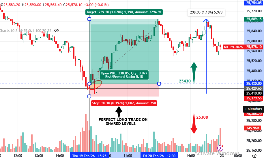 Nifty Futures opened near the upper boundary of the projected trading range at 25,423. Right from the opening minutes, strong buying interest was visible, and the price decisively broke above the resistance zone. This breakout was followed by a classic retest near 25,430, which gave traders sufficient time and clarity to initiate long positions in a controlled manner.