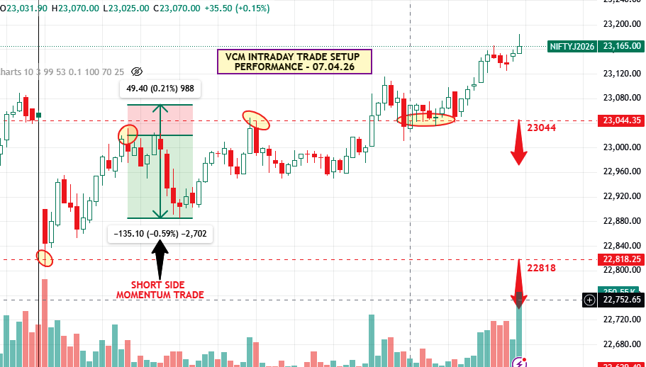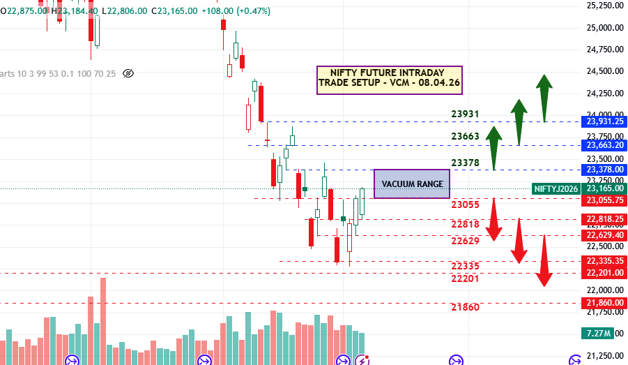For the upcoming session on 8 April 2026, the zones around 23378 and 23055 remain the key reference levels for Nifty Futures. How the market behaves around these areas will likely determine the next intraday opportunity. As always, the focus should remain on structured execution, controlled risk exposure and emotional discipline, which are the essential elements for long-term sustainability in trading.