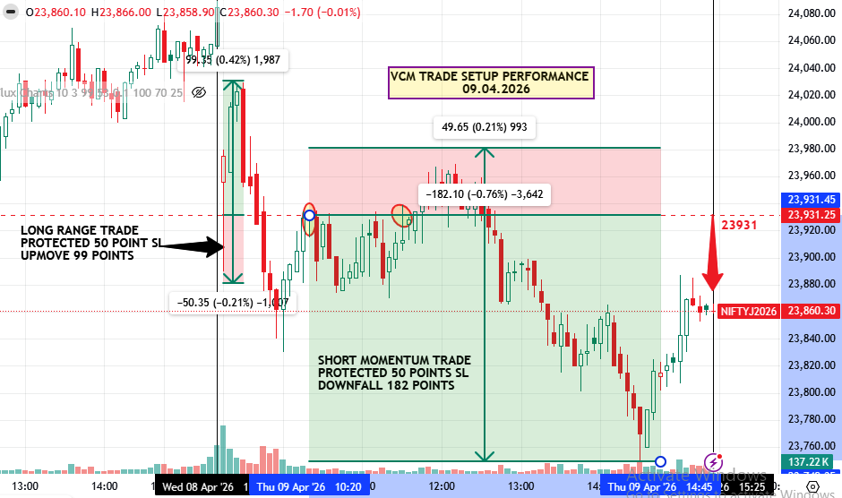 The Indian equity market continued to display a mixture of opportunity and caution on Thursday, 9 April 2026. Despite the presence of global uncertainties and some degree of profit booking after the previous day’s rally, disciplined traders still found meaningful opportunities through structured trading setups in Nifty Futures.